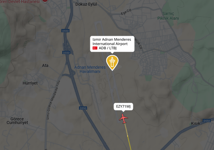 It looks like the plane has landed safely at ADB Airport.